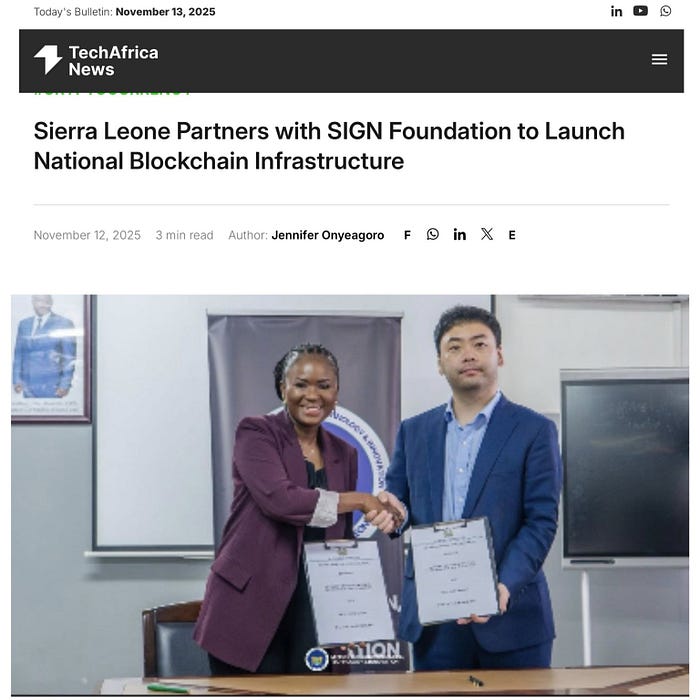 The Government of Sierra Leone, through the Ministry of Communication, Technology and Innovation (MoCTI), has signed a Memorandum of Understanding (MoU) with the SIGN Foundation to develop blockchain-powered national digital systems aimed at accelerating the country’s digital transformation.
