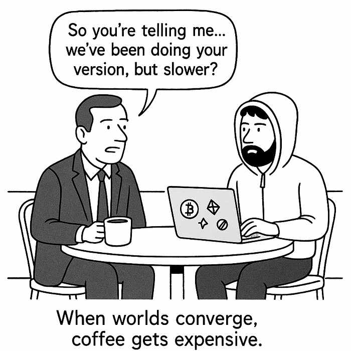 The most interesting work now happens where those two worlds collide (TradFi and DeFi), programmable compliance, on-chain reporting, tokenised bonds that reconcile in real time.